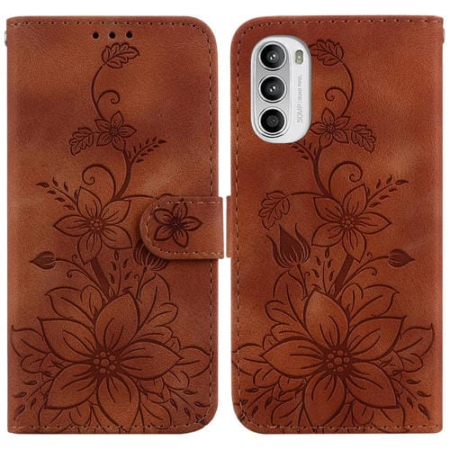 Funda de Cuero en Relieve para Motorola Moto G62 5G Lily (Marrón)