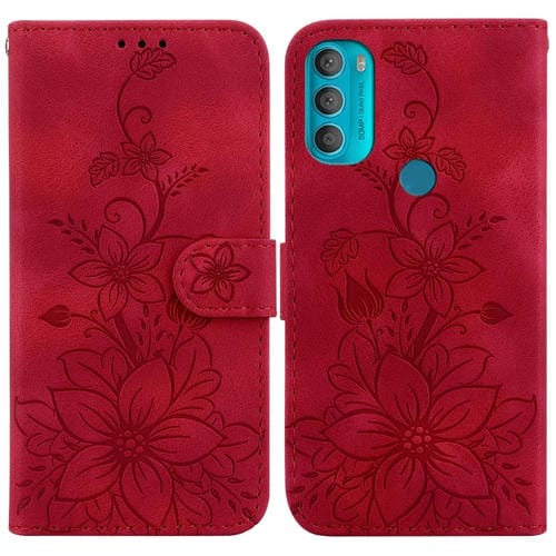 Funda para Motorola Moto G71 5G Lily de Cuero en Relieve (Rojo)
