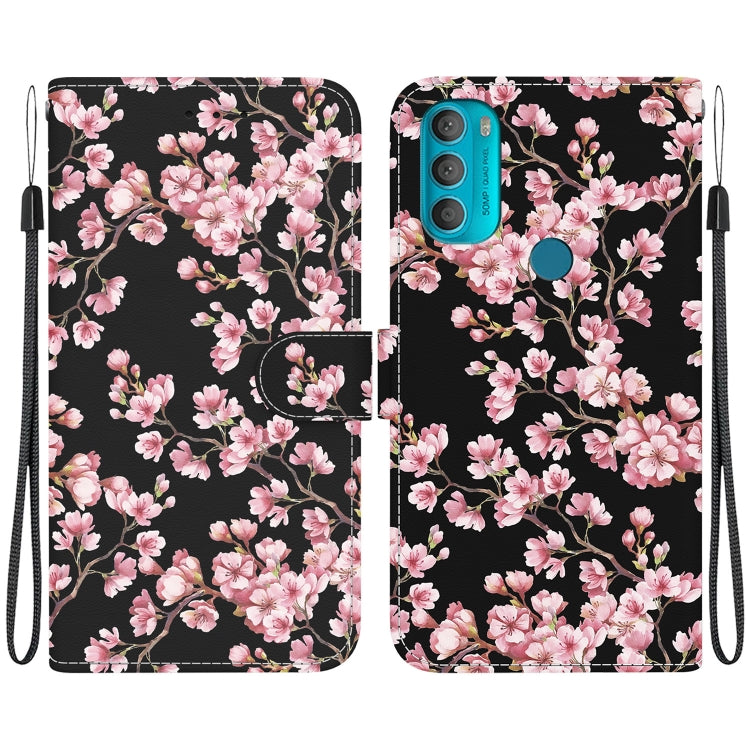 Funda de Cuero para Motorola Moto G71 con Dibujo Coloreado y Textura de Cristal (Flor de Ciruelo)