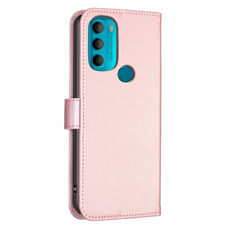 Funda de Cuero para Motorola Moto G71 con Relieve de Cuatro Hojas (Rosa)