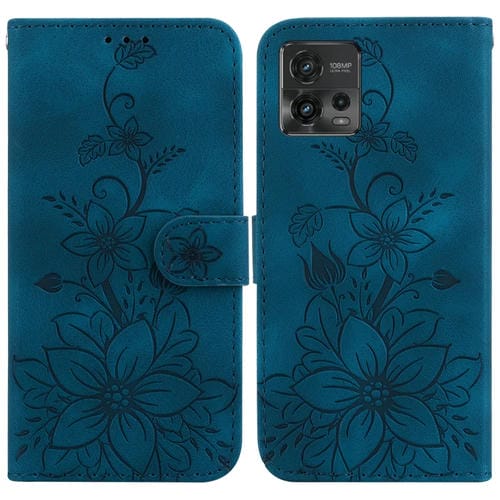 Funda de Cuero con Relieve Lily para Motorola Moto G72 (Azul Oscuro)