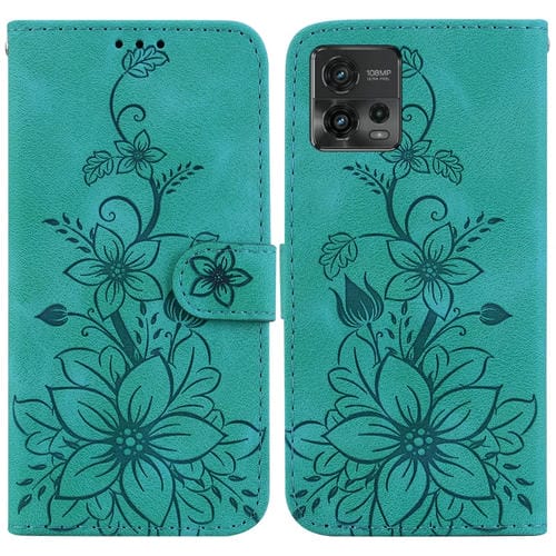 Funda de Cuero con Relieve Lily para Motorola Moto G72 (Verde)