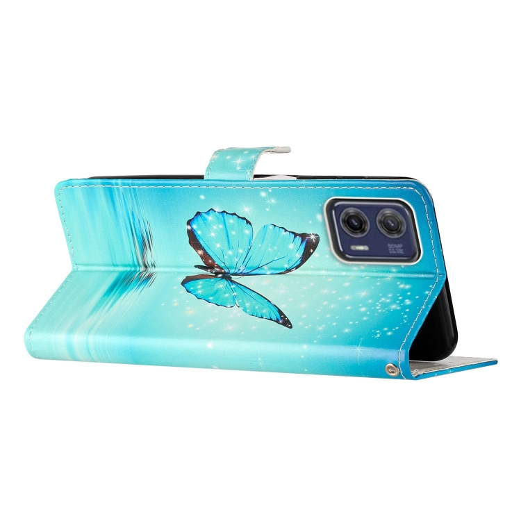 - 1x Estuche de Teléfono de Cuero para Motorola Moto G73 con Dibujo Coloreado (Mariposa Azul)