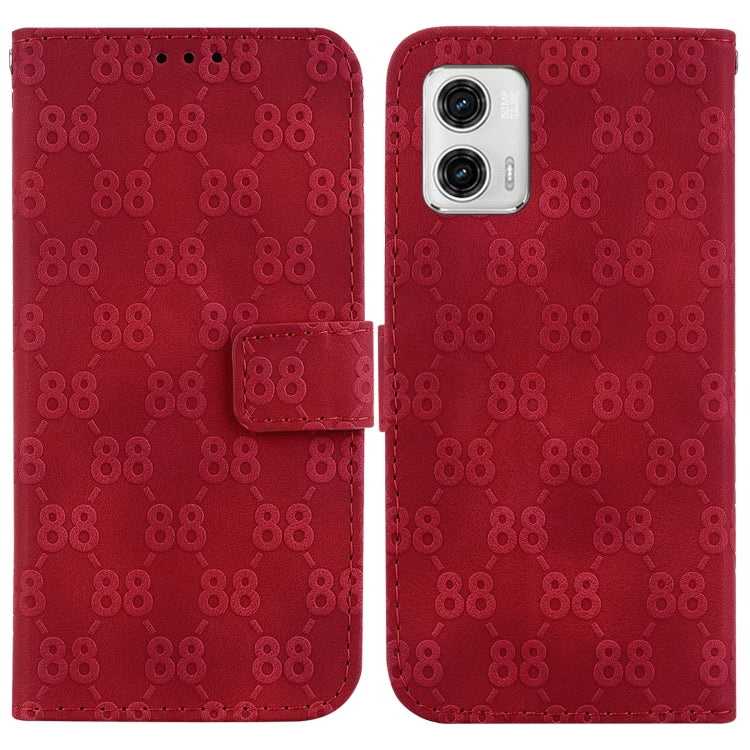 Estuche para Motorola Moto G73 de Cuero en Relieve con Doble Forma de 8 (Rojo)