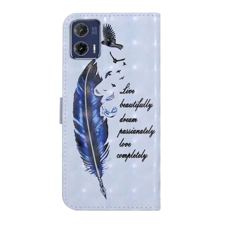 Funda de Cuero para Motorola Moto G73 con Dibujo 3D en Relieve al Óleo (Pluma Azul)
