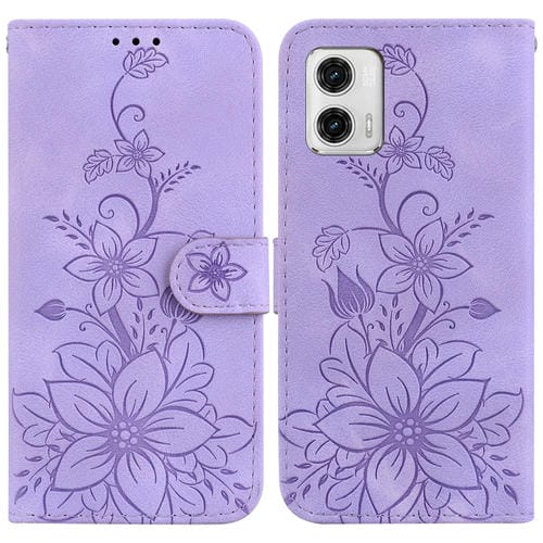 For Motorola Moto G73 Lily Embossed Leather Case (Purple)