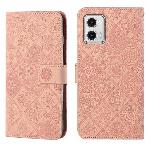 Funda de Cuero para Motorola Moto G73 con Patrón en Relieve Estilo Étnico (Rosa)