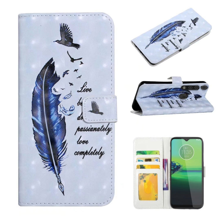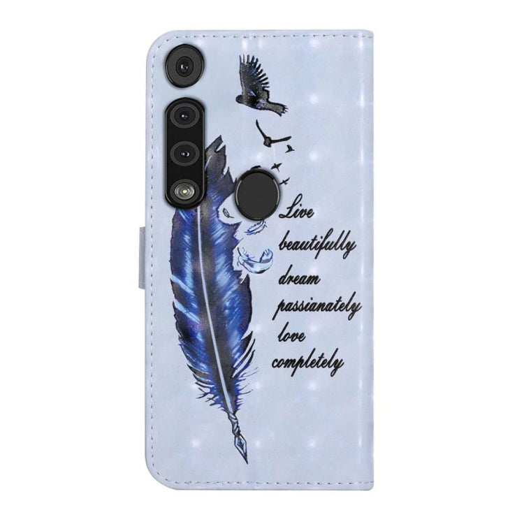Funda de Cuero para Motorola Moto G8 Play con Dibujo 3D en Relieve al Óleo (Pluma Azul)