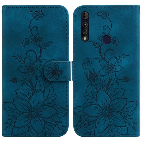 Funda de Cuero con Relieve Lily para Motorola Moto G8 Power Lite (Azul Oscuro)