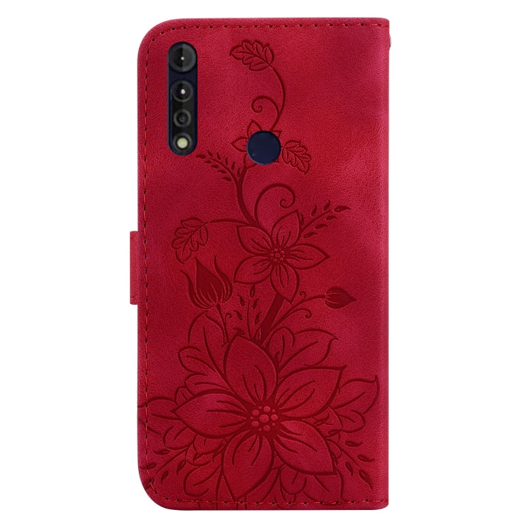 Funda de Cuero con Relieve Lily para Motorola Moto G8 Power Lite (Rojo)