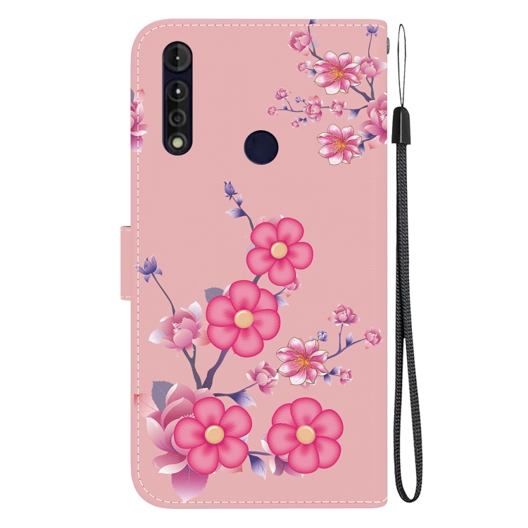 Funda de Cuero para Motorola Moto G8 Power Lite con Dibujo Coloreado y Textura de Cristal (Flores de Cerezo)