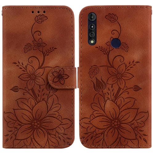 Funda de Cuero con Relieve Lily para Motorola Moto G8 Power Lite (Marrón)