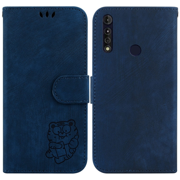 Funda para Motorola Moto G8 Power Lite de Cuero con Relieve Little Tiger (Azul Oscuro)