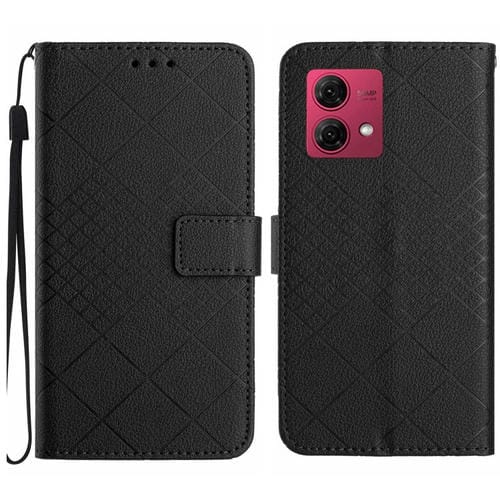 Funda de Cuero para Motorola Moto G84 5G con Textura de Rejilla Rómbica (Negro)
