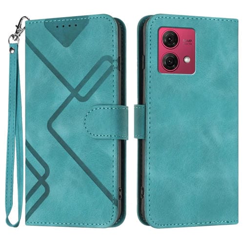 Funda de Cuero para Motorola Moto G84 5G con Sensación de Piel y Patrón de Líneas (Azul Claro)