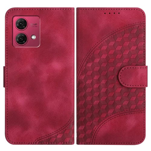 - 1x Funda de Cuero para Motorola Moto G84 5G Yx0060 con Relieve y Cabeza de Elefante con Cordón (Rojo Rosa)