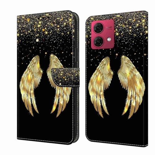 Funda Protectora de Cuero para Motorola Moto G84 Crystal 3D a Prueba de Golpes (Alas Doradas)