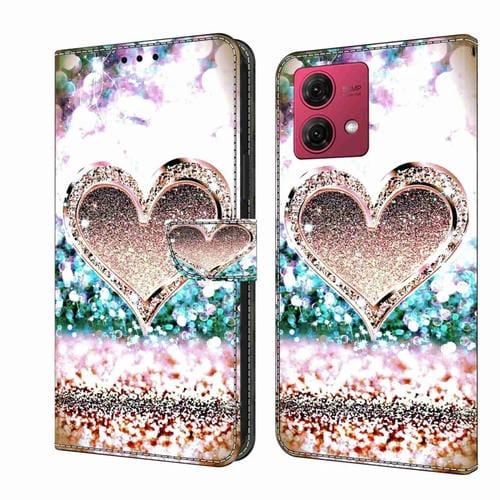 Funda Protectora de Cuero para Motorola Moto G84 Crystal 3D a Prueba de Golpes (Corazón de Diamante Rosa)