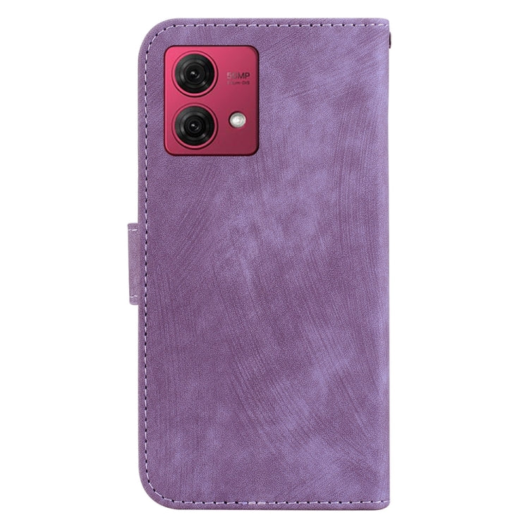 Funda de Cuero para Motorola Moto G84 con Relieve Little Tiger (Púrpura)