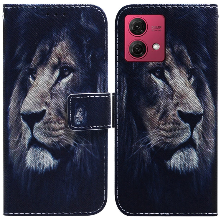 Funda de Cuero con Tapa para Motorola Moto G84 con Dibujo Coloreado (León)