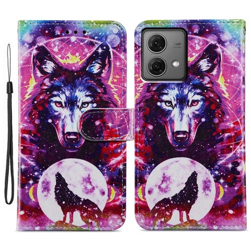 Funda de Cuero para Motorola Moto G84 con Tapa Horizontal y Patrón Tótem de Lobo