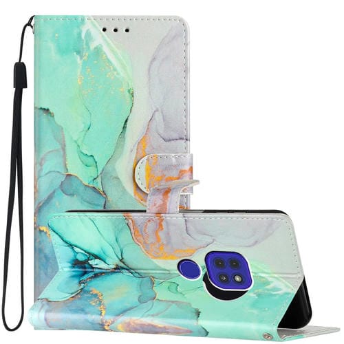 - 1x Estuche de Cuero para Motorola Moto G9 y G9 Play con Dibujo Coloreado (Mármol Verde)