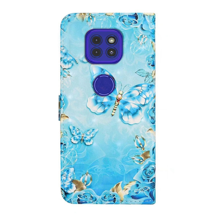 Funda de Cuero para Motorola Moto G9 Play y E7 Plus con Dibujo 3D en Relieve al Óleo (Mariposas Azules)