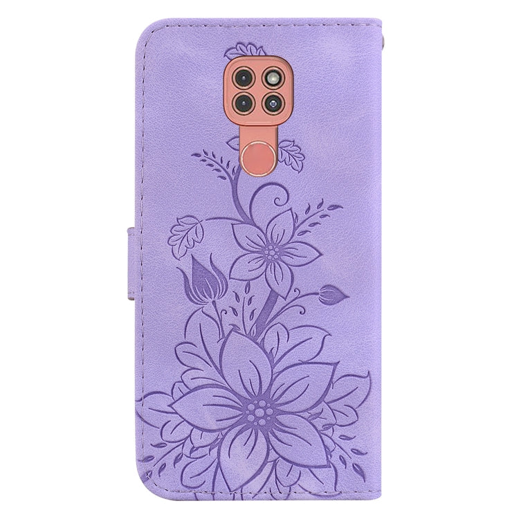 Funda de Cuero con Relieve Lily para Motorola Moto G9 Play / E7 Plus (Púrpura)