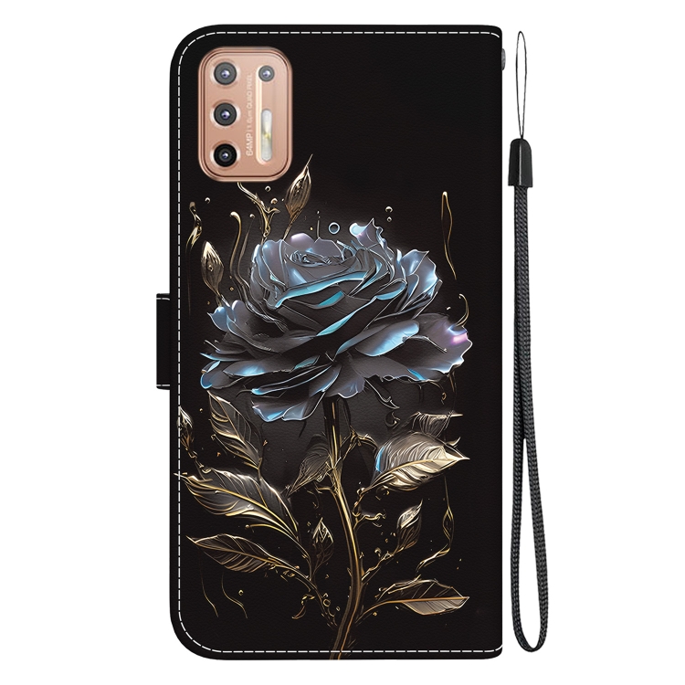 Funda de Cuero para Motorola Moto G9 Plus con Dibujo Coloreado y Textura de Cristal (Rosa Negra)