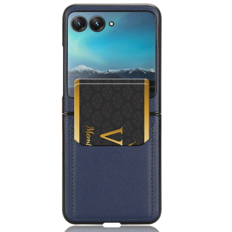 Caja para Teléfono Motorola Moto Razr 40 Ultra con Ranura para Tarjeta y Textura Litchi (Azul)