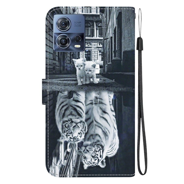 Funda de Cuero para Motorola Moto S30 Pro 5G con Dibujo Coloreado y Textura de Cristal (Reflejo de Tigre Gato)