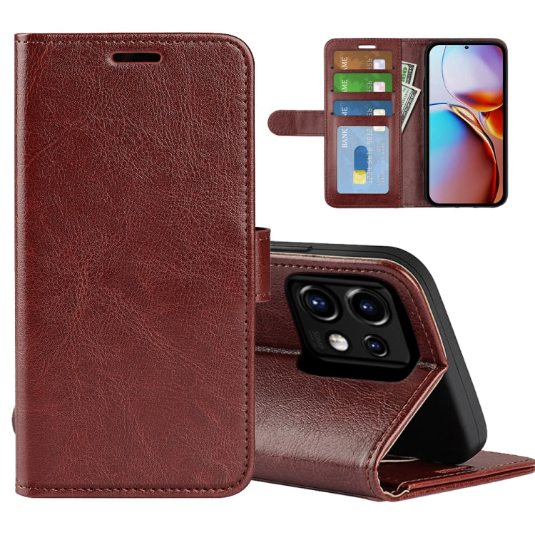 Funda de Cuero Flip para Motorola Moto X40 Pro R64 con Textura Horizontal (Marrón)