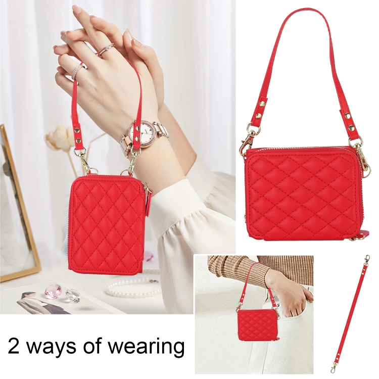 Estuche para Motorola Razr 40 con Bolsa para Tarjetas Textura Rómbica y Cordón Doble (Rojo)
