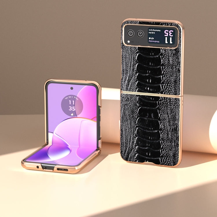 Funda para Motorola Razr 40 Serie Weilai de Cuero Genuino con Nanochapado (Negro)