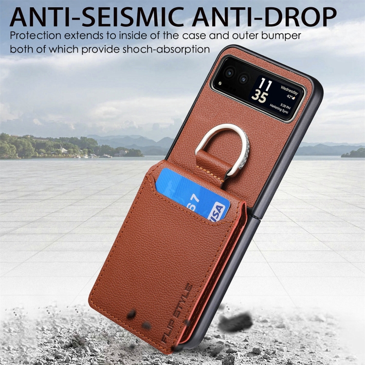 Funda para Motorola Razr 40 Litchi Texture Leather Ring Wallet Phone Case (Marrón)