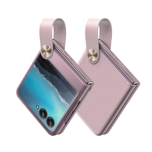 - 1x Funda de Cuero para Motorola Razr 40 Ultra con Correa de Mano (Oro Rosa)