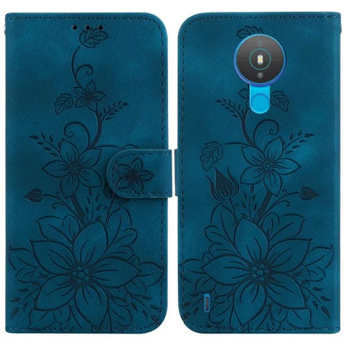 For Nokia 1.4 Lily Embossed Leather Phone Case (Dark Blue)