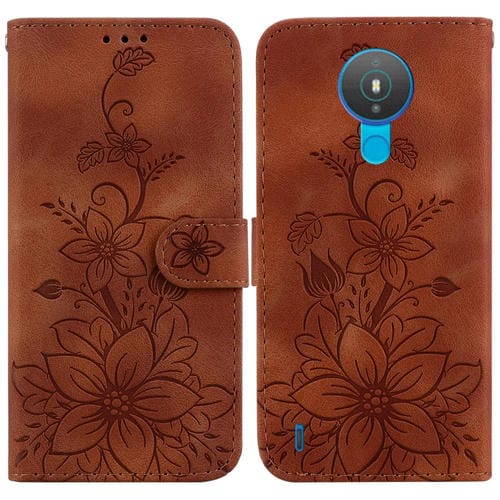 For Nokia 1.4 Lily Embossed Leather Phone Case (Brown)