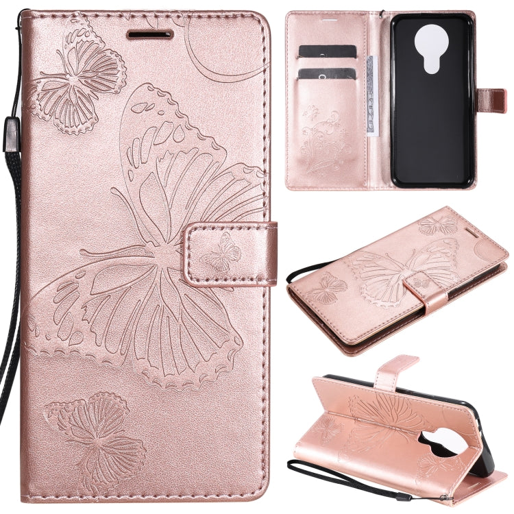 Para Nokia 3.4 3D Mariposas en relieve Patrón Horizontal Flip Funda de cuero con soporte, ranura para tarjeta y billetera