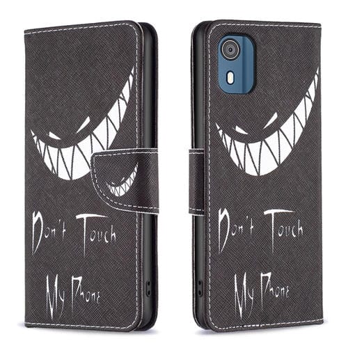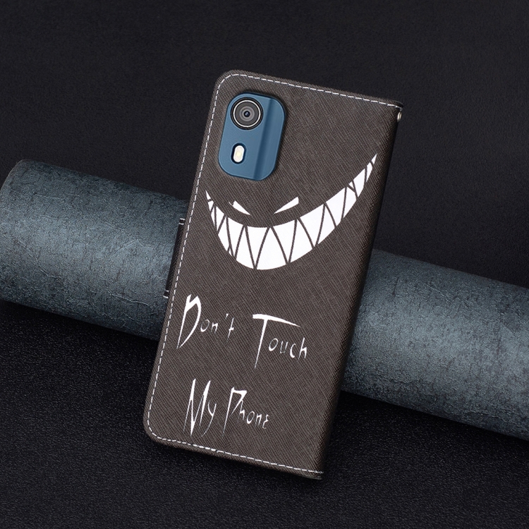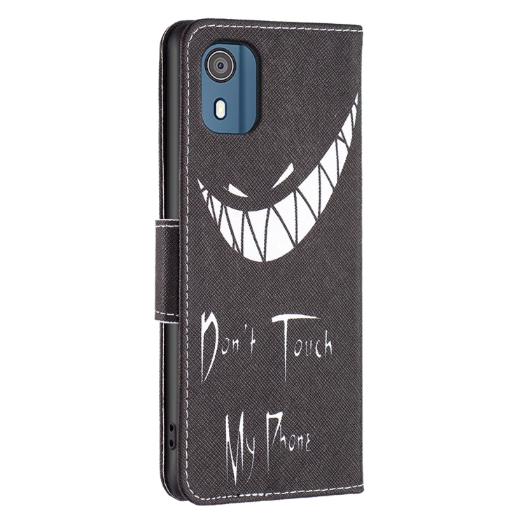 Estuche de Cuero para Nokia C02 con Patrón de Dibujo Coloreado (Smirk)