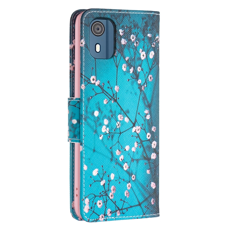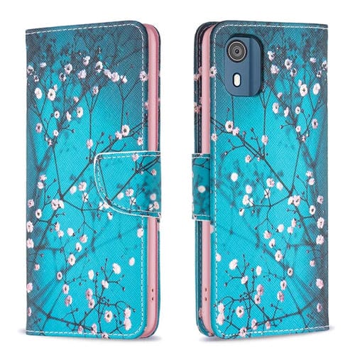 Estuche para Teléfono Nokia C02 de Cuero con Patrón de Flor de Ciruelo (Coloreado)