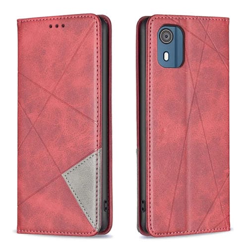 Funda para Nokia C02 Rhombus Texture Caja de Teléfono de Cuero Magnético (Rojo)