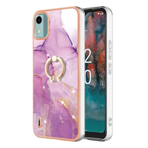 Funda para Nokia C12 Imd TPU Mármol Galvanizado con Soporte para Anillo (Púrpura)