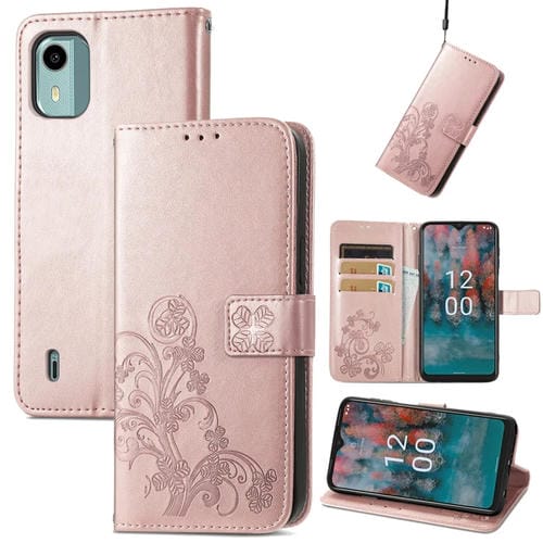 Estuche para Teléfono Nokia C12 de Cuero con Hebilla en Relieve y Cierre de Cuatro Hojas (Oro Rosa)