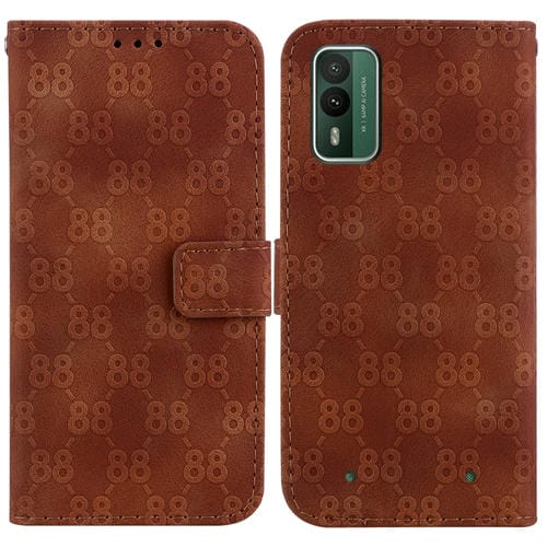 Estuche para Nokia C12 de Cuero en Relieve con Doble Forma de 8 (Marrón)
