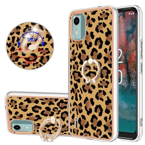 Funda para Nokia C12 Galvanoplastia IMD Doble Cara con Soporte para Anillo (Leopardo)