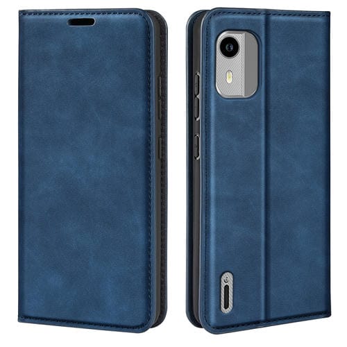 Funda para Nokia C12 Retro-Skin con Succión Magnética y Cuero (Azul Oscuro)