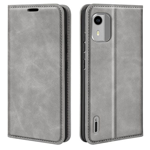 Funda para Nokia C12 Retro-Skin con Succión Magnética y Cuero (Gris)