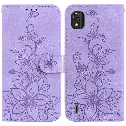 Funda para Nokia C2 2Nd Edition de Cuero con Relieve Lily (Púrpura)