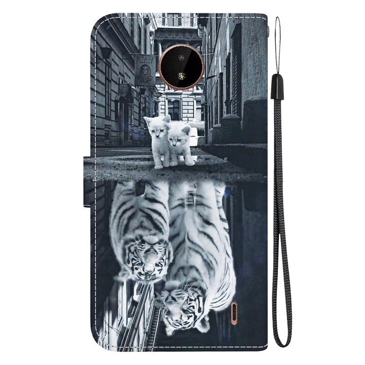 Funda para Teléfono Nokia C20 C10 de Cuero con Dibujo Coloreado y Textura de Cristal (Reflejo de Tigre Gato)